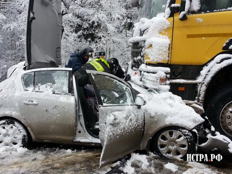 По словам сотрудников ДПС, работающих на месте ДТП, водитель большегруза не справился с управлением и автомобиль выехал на полосу встречного движения. Иномарка получила удар практически влобовую. От удара «Опель» превратился в груду искореженного металла, пострадали водитель и двое пассажиров, среди которых был полуторогодовалый ребенок. Все трое были госпитализированы. Сотрудники 11 батальона ДПС (северный) выясняют подробности происшествия. Очевидцы же утверждают, что после обильного снегопада дорога на ММБК превратилась в месиво, что не могло не послужить предпосылкой к дорожно-транспортному происшествию. Автомобильная трасса была перекрыта для движения на несколько часов, опасные участки были обработаны реагентами.